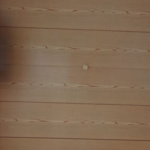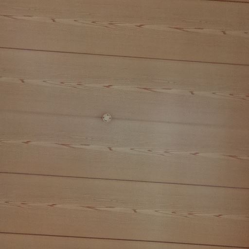 天井は木目で照明取付口あり(確度80%):木目の天井で中央に照明器具の取付け口が見える。