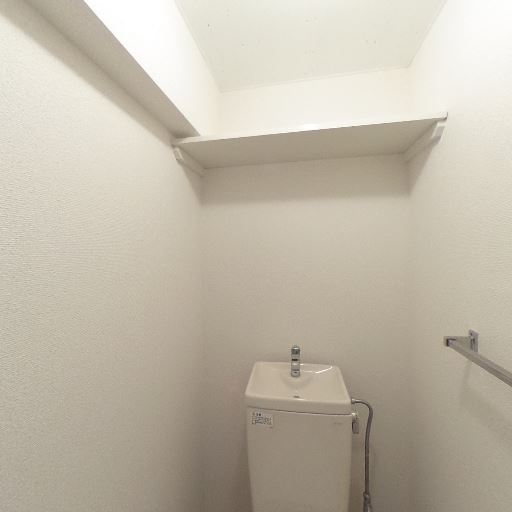 収納棚あり(確度86%):便器上部に奥行き浅めのオープン棚が1段ある。