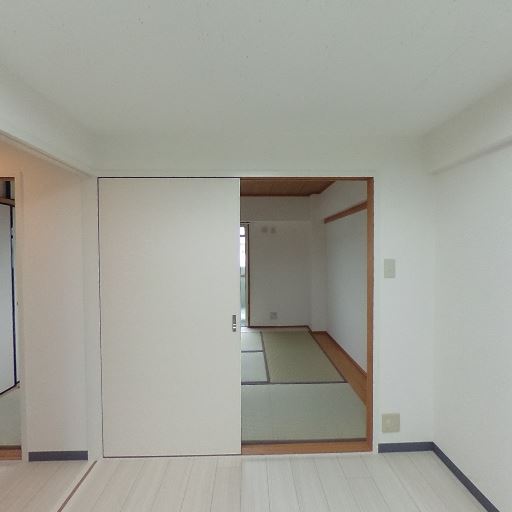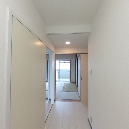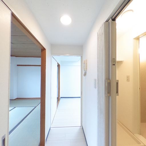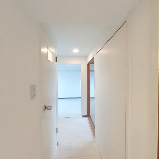 和室の併設(確度77%):廊下左側に畳敷きの和室が見える。