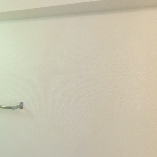 タオル掛け設置(確度80%):右側壁面にメタルバーのタオル掛けが取り付けられている。