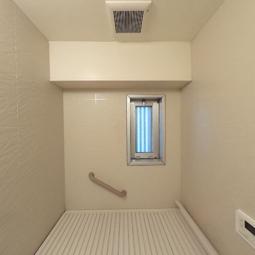 手すり付きで安全性配慮(確度84%):浴槽側の壁に手すりが設置されている。