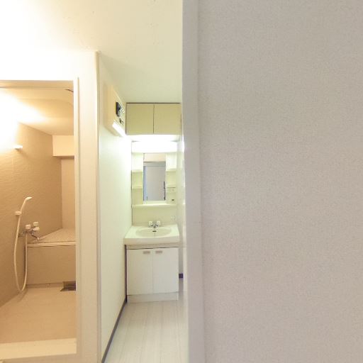 動線上に水回りが集約(確度83%):廊下沿いに洗面台と浴室が配置されている。