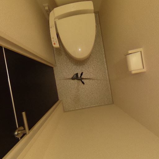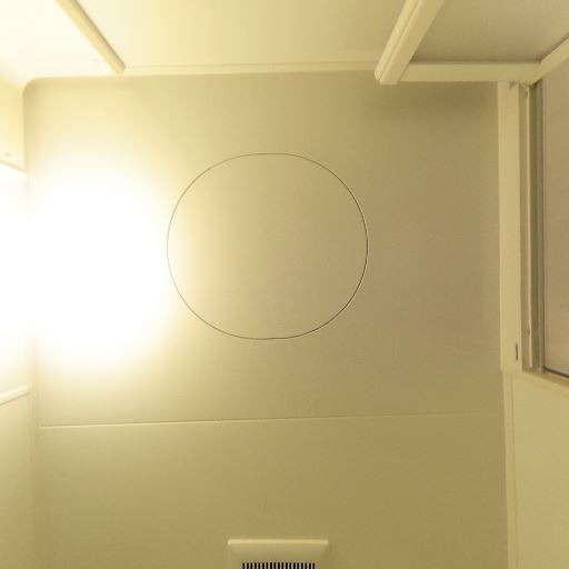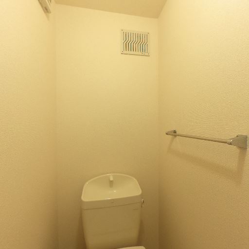 トイレ内に換気設備がある(確度91%):便器正面上部の壁に換気口らしき設備が見え、トイレ内の換気が確保されている可能性が高い。