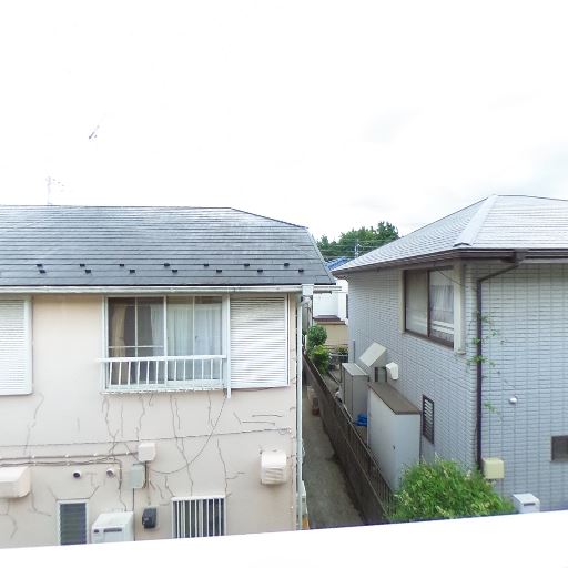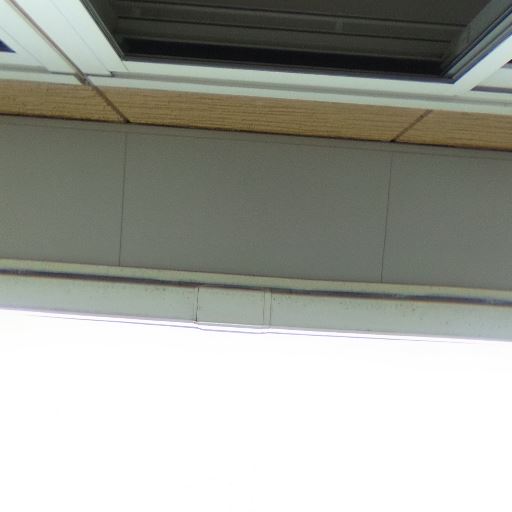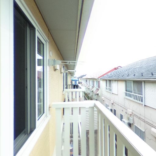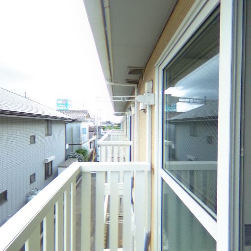 外壁や軒天にやや経年感がある(確度71%):バルコニー天井付近や外壁まわりに薄い汚れや使用感が見られ、建物全体に多少の経年感があるように見える。