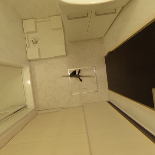 全体的に清潔感のある明るい内装(確度83%):壁・床・設備が白系で統一され、照明も十分に入っているため、空間全体が明るく清潔に見える。目立つ汚れや大きな傷は画像上では確認しにくい。