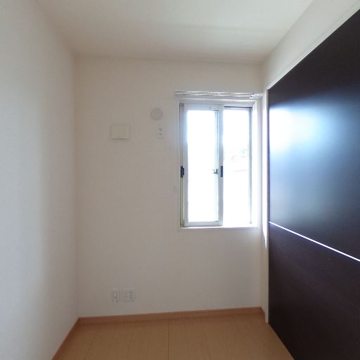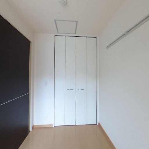 クローゼット収納が備わっている(確度90%):奥の壁面に両開きの収納扉があり、衣類や日用品をまとめてしまえる収納スペースが確保されている。