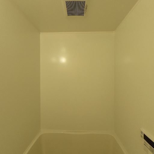 浴室乾燥・物干し設備がありそう(確度86%):天井に換気口があり、天井付近に物干しバーらしき設備も見えるため、浴室内で洗濯物を干せる仕様の可能性が高い。