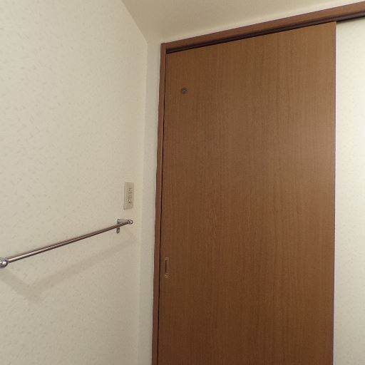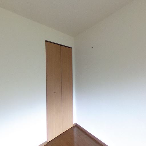 収納(確度72%):壁面に縦長のクローゼット扉がある。室内はシンプルで収納はこの1箇所がメインと見られる。