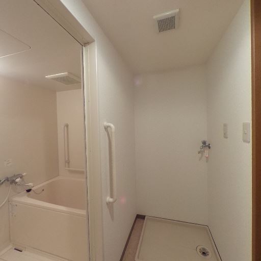 手すり付きで安全性が高い(確度86%):脱衣所と浴槽の出入口付近に縦手すりが設置されている。
