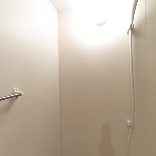 シャワー設備(確度88%):壁にシャワーホースとヘッドが取り付けられている。