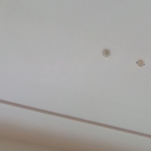 天井設備(確度73%):天井に火災報知器などの設備が設置されている。特に汚れやシミは見当たらない。