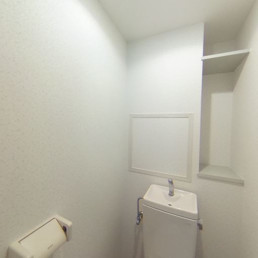 収納・棚の有無(確度80%):便器上の壁面に埋め込み棚と小さなニッチがあり、トイレットペーパー等の収納に使えそう。