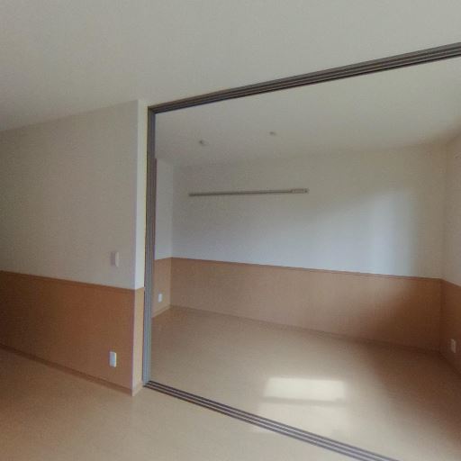 • 引き戸で空間を仕切れる(確度76%):天井と床にスライドレールがあり、可動式の間仕切りが使える造り。