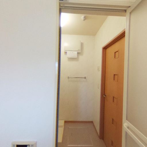 • 収納(シューズボックス)の存在(確度82%):木目の大型収納扉が玄関脇にあり、靴収納と推測される。