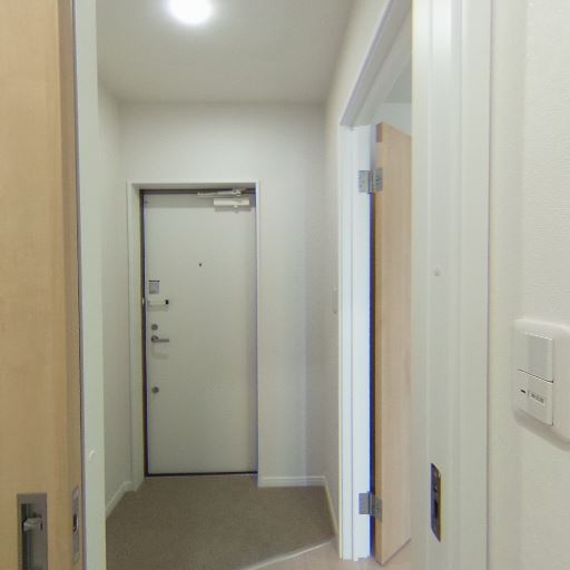 • 居室側は採光が期待できる(確度76%):洗面スペースから見える隣室に強い自然光が入っており、居室側には開口部があると推測される。洗面脱衣所自体は内側寄りでも、住戸全体としては明るさが期待できる。