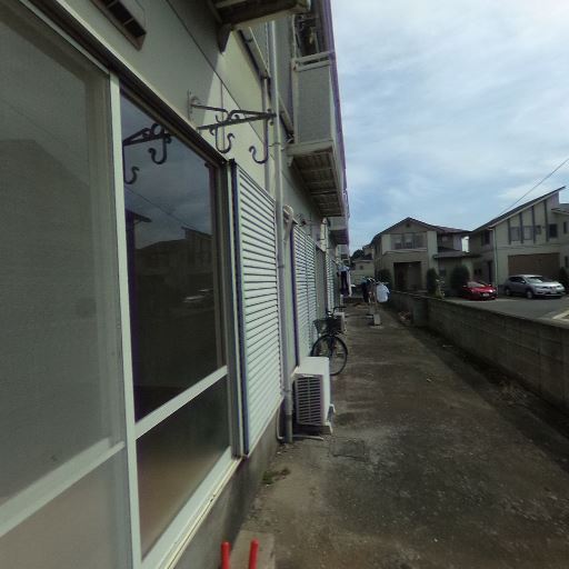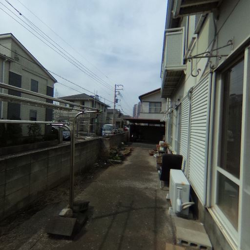 専用庭・共用通路のようなスペースあり(確度78%):建物の1階外側に細長い土間スペースがあり、物干し台や室外機、自転車などが置かれている。