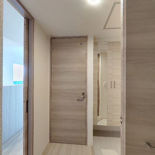浴室への動線が近い(確度78%):洗面所から直結で浴室が見え、扉の開口も広めに見える。