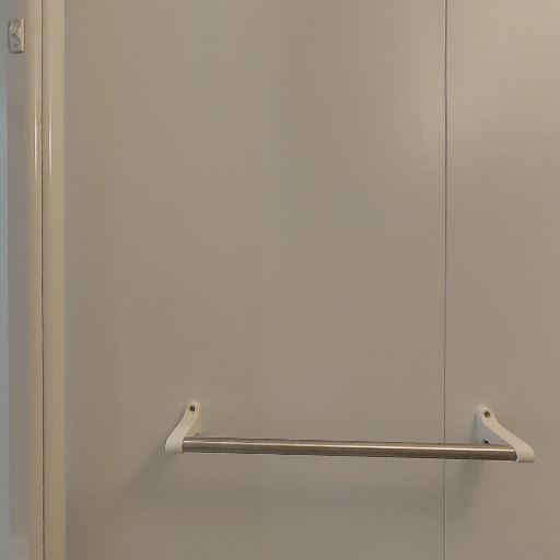手すりとタオルバー(確度78%):出入口側の壁に横手すり、別面にタオルバーが設置されている。入浴時の動作補助とタオルの動線が良い。