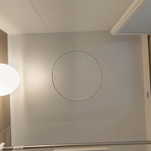 換気・乾燥設備(確度72%):天井に丸型の点検口と換気口があり、浴室乾燥機または換気扇の存在が示唆される。