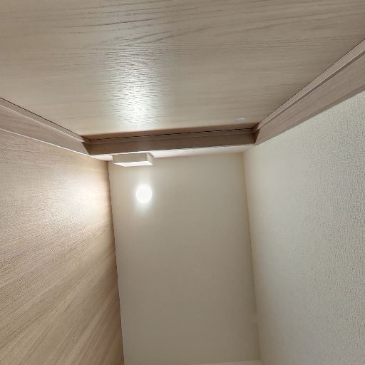 換気・照明(確度70%):天井にダウンライトと換気口(もしくは設備ボックス)があり、明るさと換気は確保されている。