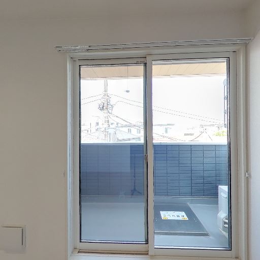 明るい室内とバルコニー付き(確度86%):大きな掃き出し窓の先にバルコニーがあり、外光がしっかり入る。