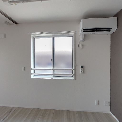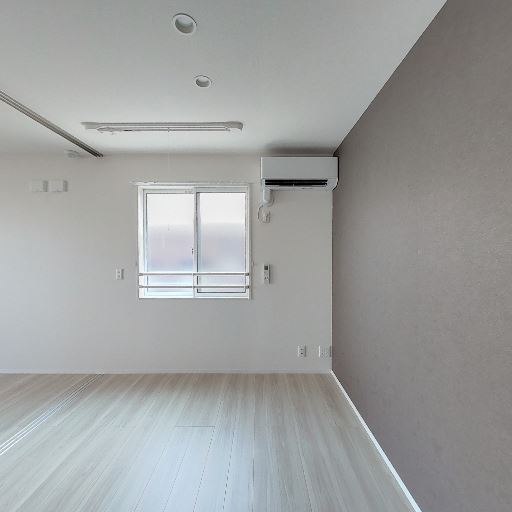 エアコン設置済み(確度92%):居室に壁掛けエアコンが取り付けられている。