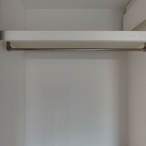 クローゼットのハンガーパイプ付き収納(確度86%):上部棚とハンガーパイプが設置された収納スペースがある。