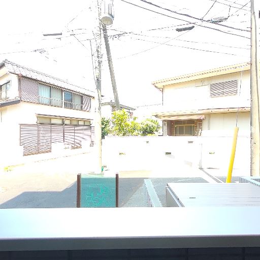採光・眺望(確度74%):正面は低い塀越しに道路と住宅。視界は開けており日当たりも期待できる。