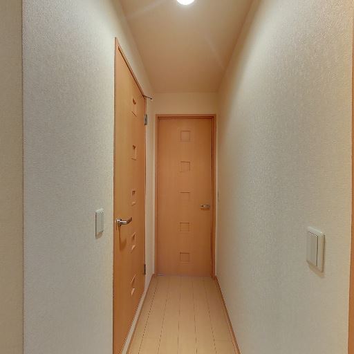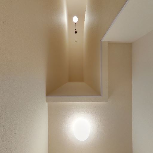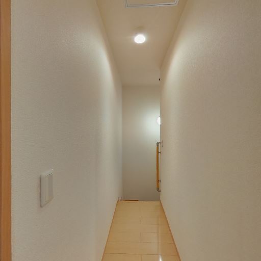 • 採光はやや限定的(確度76%):玄関に窓は見当たらず、照明で明るさを確保している。吹き抜け状に上部照明がある。