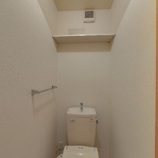 • トイレに収納棚あり(確度86%):便器上部に奥行きのあるオープン棚が1段設置されている。