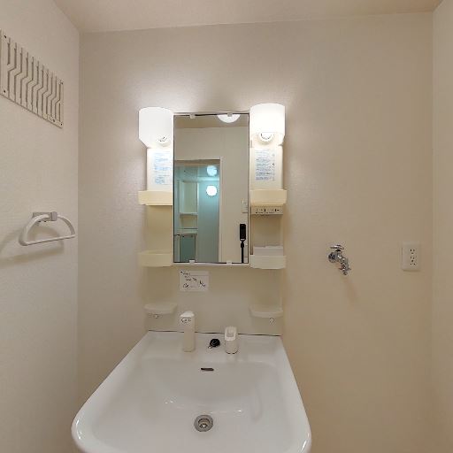• 浴室が隣接(確度83%):引き戸の向こうに浴室が見える。脱衣所と一体の洗面室構成。