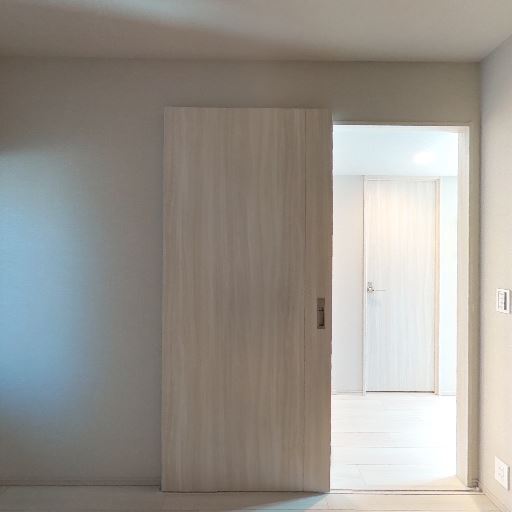 • 引き戸で開閉スペース不要(確度82%):部屋の出入口は引き戸で、廊下側への開きしろが不要。
