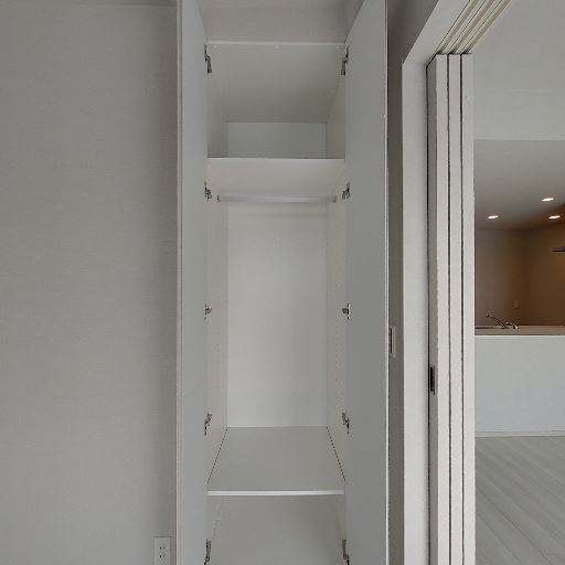 • 廊下収納の充実(確度83%):可動棚のついた縦長の収納が廊下脇にあり、日用品やリネンの保管に使えそう。