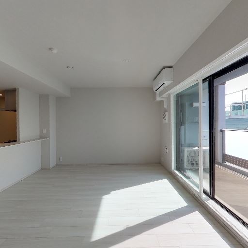 • 採光の良さ(確度87%):バルコニーに面した大きな掃き出し窓から日光がしっかり入っている。床に強い日なたができており、日中は明るい空間と推測。
