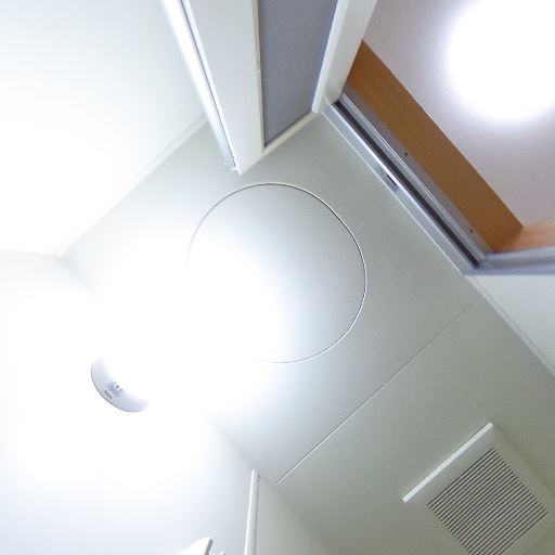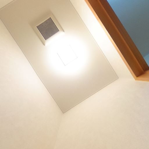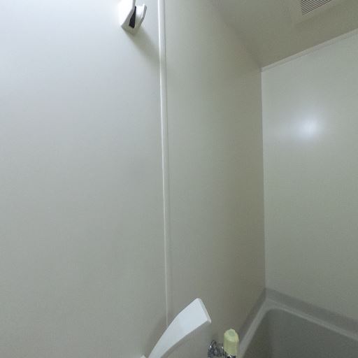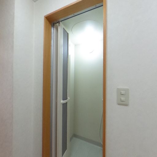 • 室内物干し用と思われるバー受けがある(確度55%):壁上部に小型の金具、天井に丸いハッチ状の部材が見え、浴室乾燥または室内物干し関連の設備がある可能性がある。ただし物干し竿そのものは確認できない。