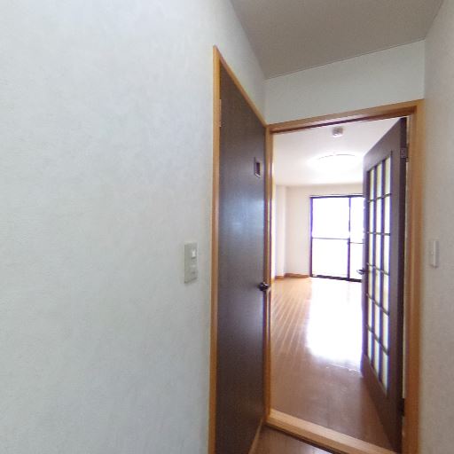 • 玄関から居室まで一直線で採光が届きやすい(確度83%):廊下の先に大きな開口部が見え、居室側からの自然光がこのスペースまで届いている。