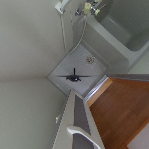 • 浴室内に洗濯機置場が近接している(確度84%):出入口のすぐ外側に洗濯機パンが見えており、脱衣スペースは最小限で、洗面脱衣室と浴室がかなり近接した配置とみられる。