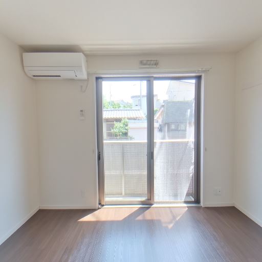 エアコン設置済み(確度95%):窓上部の左側に壁掛けエアコンが確認できる。