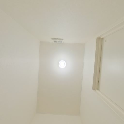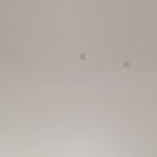 天井設備(確度70%):天井中央付近に引掛シーリングと感知器のような機器が見える。照明は未設置。