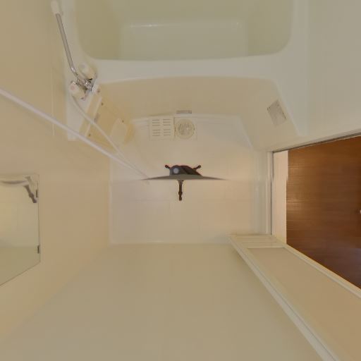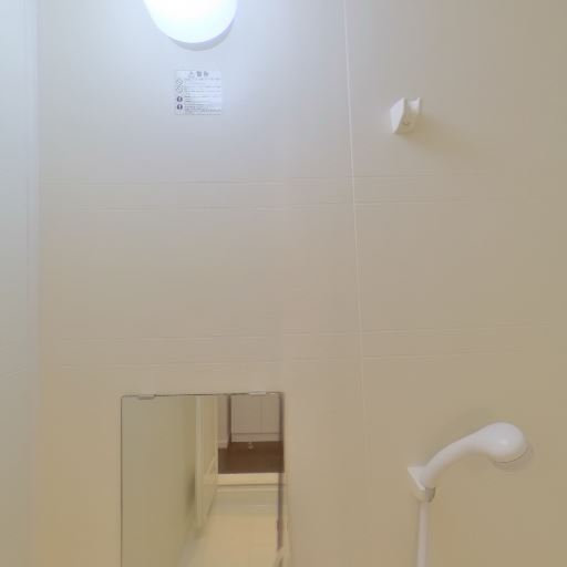 浴室換気設備(確度70%):天井に換気口があり、浴室側にも換気関連の開口が見える。湿気対策がされている。