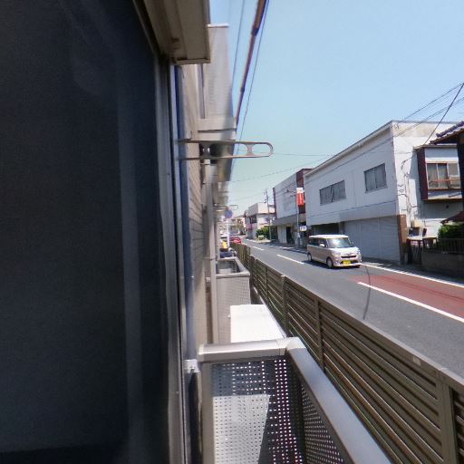 バルコニーの存在と物干し金具(確度82%):手すり付きのコンパクトなバルコニーがあり、天井側に物干し金具が設置されている。