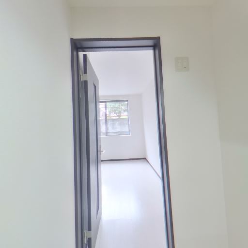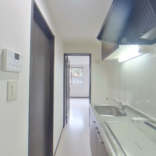 居室への開口部と採光(確度74%):キッチン奥のドアの先に窓のある明るい居室が見える。
