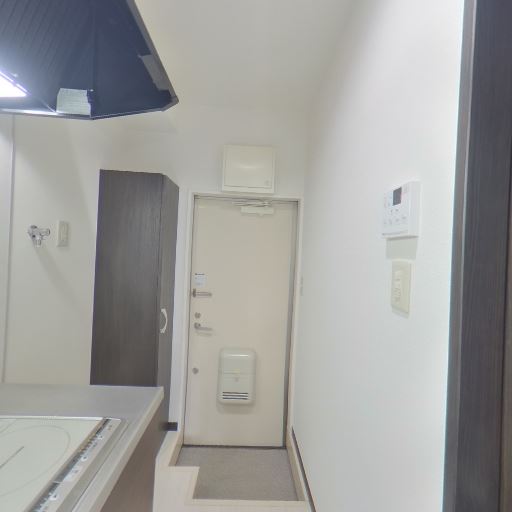 玄関とキッチンが近接(確度78%):キッチンの横に玄関ドアがあり土間が見える。コンパクトな1K/ワンルーム動線と推測。