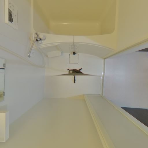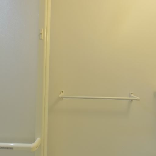 手すり設置(確度78%):浴室入口付近の壁に手すりが取り付けられている。