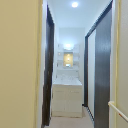 洗面台と浴室が近接(確度84%):廊下側に洗面台があり、その奥が浴室になっている動線。