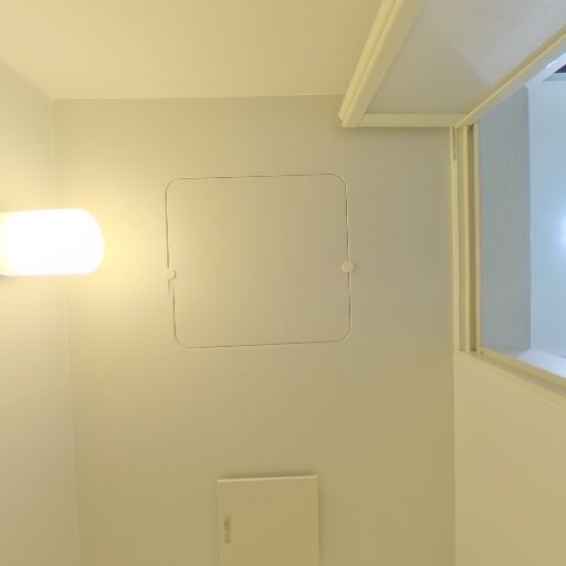 換気設備の存在(確度63%):天井に点検口と換気関連の設備らしきパネルが見える。
