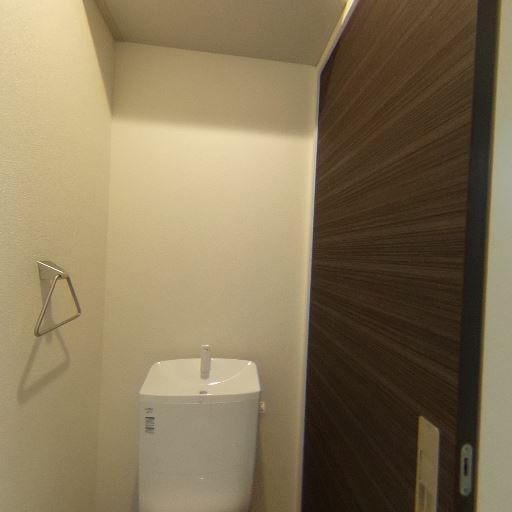 収納棚あり(確度78%):便器上部に小さめの吊り棚が設置されている。