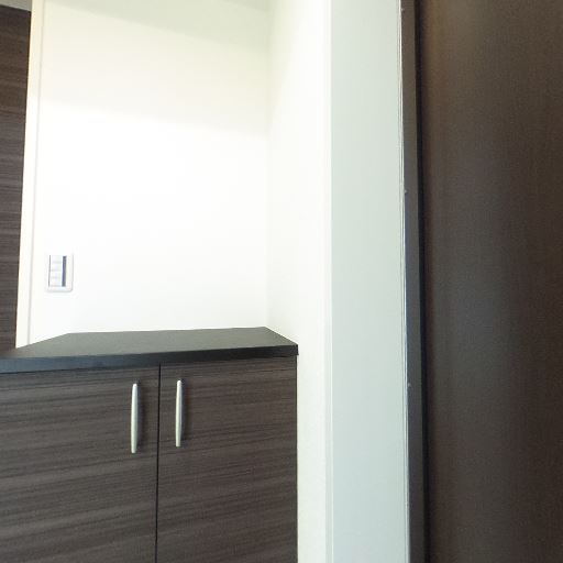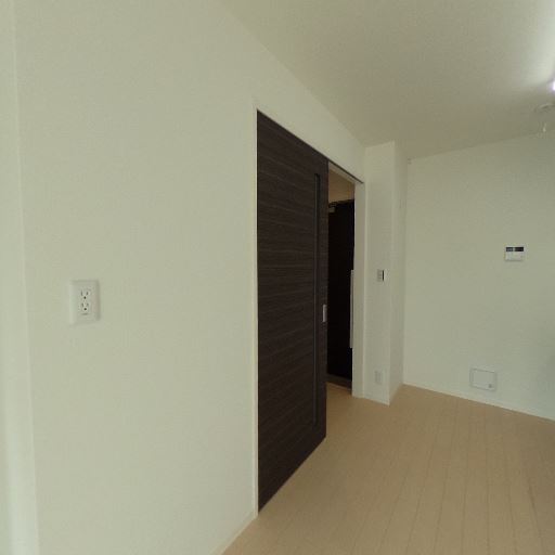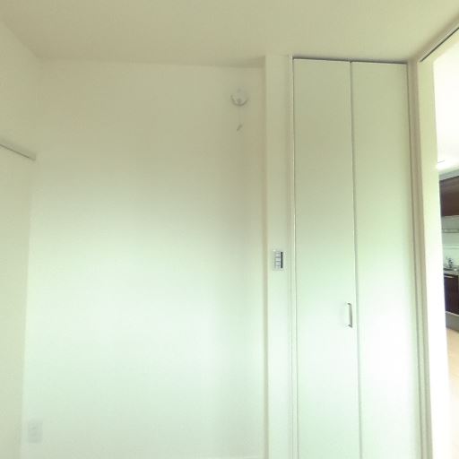 収納スペースあり(確度78%):片側の壁に縦長のクローゼット扉が見える。