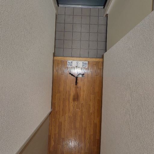 • 廊下の幅と動線(確度70%):細長い廊下で片側に室内扉、正面にすりガラスの扉。ややタイトな印象。