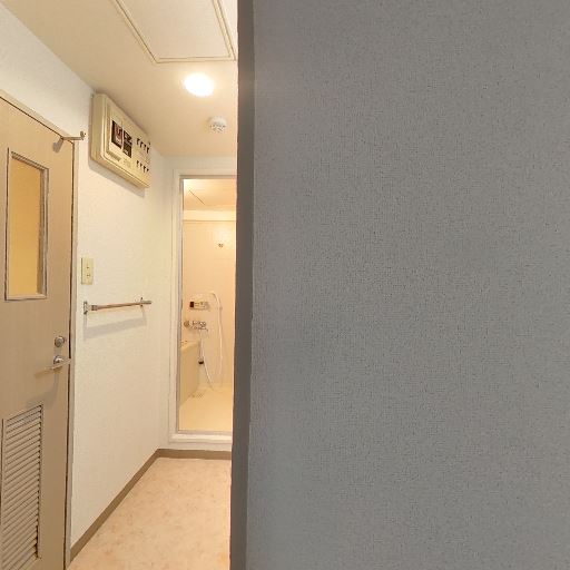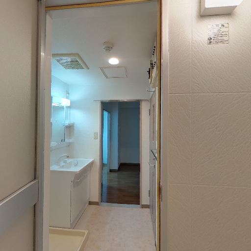 • 水回りは独立して近接(確度80%):左方向に脱衣・洗面スペースがあり、その奥に浴室が見える。
